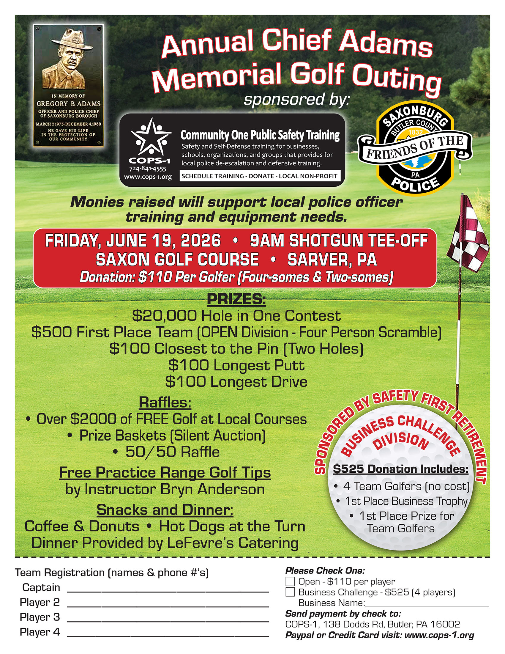 Your support of the Chief Greg Adams Best Ball Golf Scramble is very much appreciated.